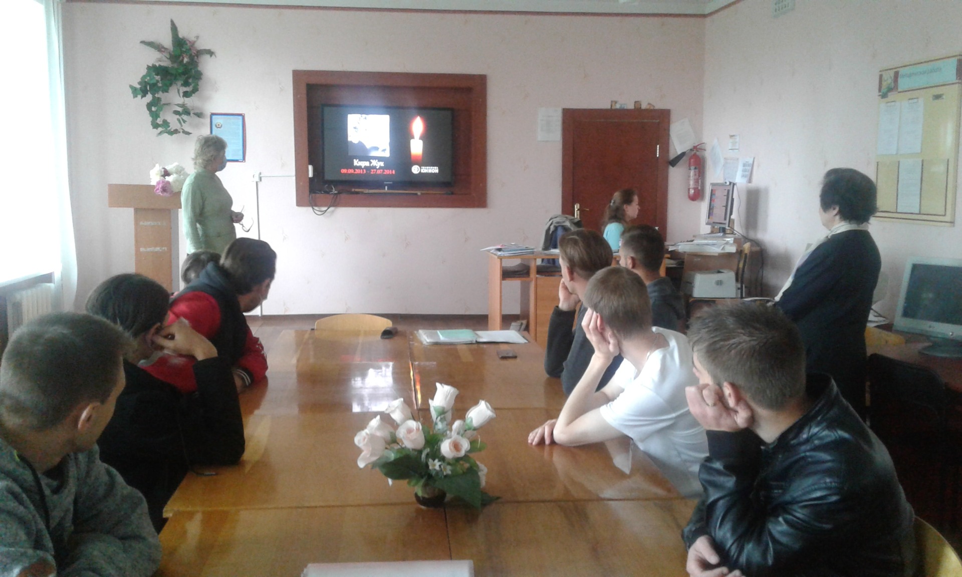 Учащимся рассказали о тех трагических событиях, когда в результате штурмового удара в центре Луганска погибли 8 человек и 28 были ранены осколками. Всего было выпущено 28 боеприпасов. Присутствующие пришли к выводу, что мир – это мир в головах людей. Всего за время боевых действий на Донбассе погибло более 200 детей, ранено более 500.